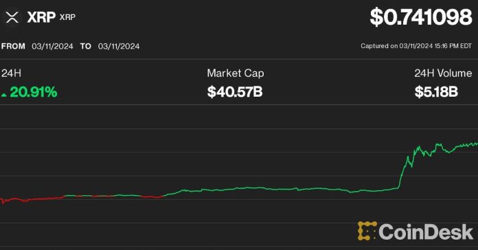 HomeCrypto NewsCoindeskXRP Jumps 20% After Mysterious Binance Transfers as Crypto Rally Expands to LaggardsMarch 11, 202400 CoindeskThe rally could be a sign of traders rotating some of their capital to tokens that haven’t moved yet. Source link TagsRipple priceXRP priceXRP rallyPrevious articleYou Can Now Earn Bitcoin for Playing Sudoku—Here’s How MuchNext articleDespite Crypto Uptick, Paypal’s PYUSD Stays Quiet in the Top Ten Stablecoin RaceShareFacebookTwitterPinterestWhatsApp