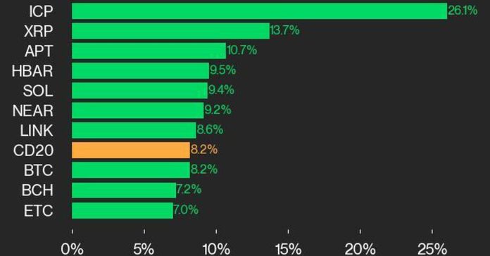HomeCrypto NewsCoindeskCoinDesk 20 Performance Update: Broad-Based Gains Push Index Up 8.2%July 15, 202400 CoindeskICP led today’s gains in the CoinDesk 20 Index with a 26.1% rise. Source link TagsCoinDesk 20CoinDesk IndicesIndexindicespricePrevious articlePhilip Gradwell Joins Tether as Head of EconomicsNext articleEthereum Technical Analysis: ETH’s Bullish Momentum Continues Amid UptrendShareFacebookTwitterPinterestWhatsApp