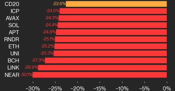 HomeCrypto NewsCoindeskCoinDesk 20 Performance Update: Index Plunges 22.6% Amid Global Market DeclineAugust 5, 202400 CoindeskThe CoinDesk 20 experienced a major downturn over the weekend with NEAR and LINK among the hardest hit. Source link TagsBitcoinCoinDesk 20CoinDesk Indicescrypto priceCryptocurrencyEtherPrevious articleMicroStrategy Down 29% Ahead of Opening Bell as Crypto Stocks Battered by Bitcoin LossesNext articleCrypto Carnage: $1.15B in Leveraged Positions Annihilated as Bitcoin NosedivesShareFacebookTwitterPinterestWhatsApp