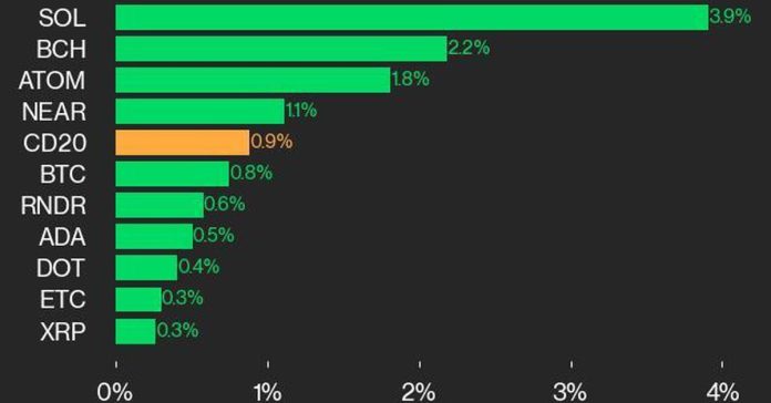 HomeCrypto NewsCoindeskCoinDesk 20 Performance Update: SOL Leads with 3.9% Gain as Index ReboundsAugust 7, 202400 CoindeskTwelve assets in the CoinDesk 20 are trading higher, with SOL up 3.9% and BCH up 2.2%. Source link TagsCoinDesk 20CoinDesk Indicescrypto priceCryptocurrencyIndexindicesPrevious articleGroup Urges Nigeria to End Naira Float, Reinstate SubsidiesNext articleEthereum Entities Largely Complied With Tornado Cash Sanctions, NY Fed Paper SaysShareFacebookTwitterPinterestWhatsApp