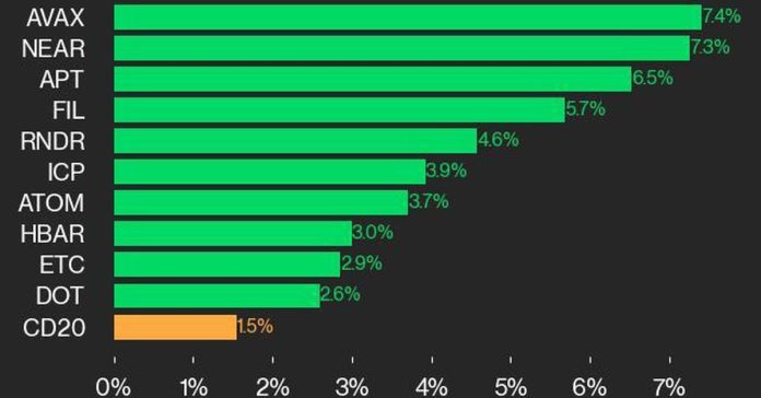 HomeCrypto NewsCoindeskCoinDesk 20 Performance Update: AVAX and NEAR Surge as Index Climbs 1.5%August 23, 202400 CoindeskAVAX leads with a 7.4% increase, closely followed by NEAR at 7.3%, lifting the index higher. Source link TagsCoinDesk 20CoinDesk Indicescrypto priceCryptocurrencyPrevious articleKey Tests Confirming Human-Level Artificial General Intelligence (AGI)Next articleBitcoin ETFs Extend Winning Streak as Ether Funds Slip Into RedShareFacebookTwitterPinterestWhatsApp