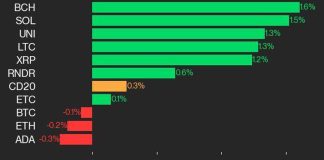 CoinDesk 20 Performance Update: RNDR Bounces 14.2%, Leading Index Higher