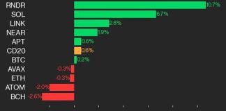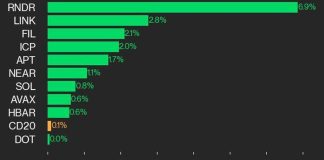 CoinDesk 20 Performance Update: RNDR Surges 6.9% as Index Inches Higher