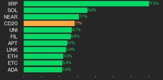 CoinDesk 20 Performance Update: Index Rallies 7.1%, Led by XRP’s 17.5%...
