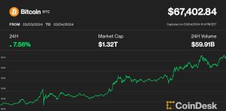 Bitcoin Tops $67K, Nearing Silver’s $1.38T Market Cap