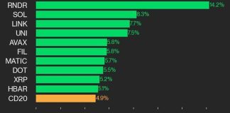 CoinDesk 20 Performance Update: RNDR Bounces 14.2%, Leading Index Higher