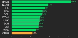 CoinDesk 20 Performance Update: RNDR’s 12% Gain Leads as Index Rebounds