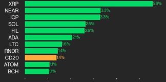CoinDesk 20 Performance Update: XRP and NEAR Help Push Index Upward